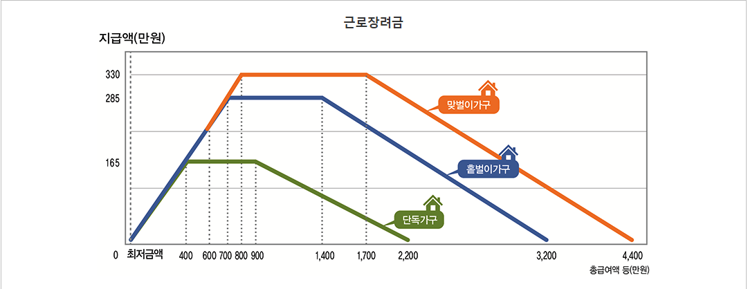| 홀벌이 가구 | 3,200만 원 미만 | 최대 285만 원 |
